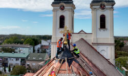 Rekonstrukcija krova na hramu Bogojavljenja Gospodnjeg u Srbobranu posao je koji je ovog leta sa pažnjom rađen, a danas postavljeni novi krstovi na zapadnoj i istočnoj strani broda crkve, kruna su tog posla.
