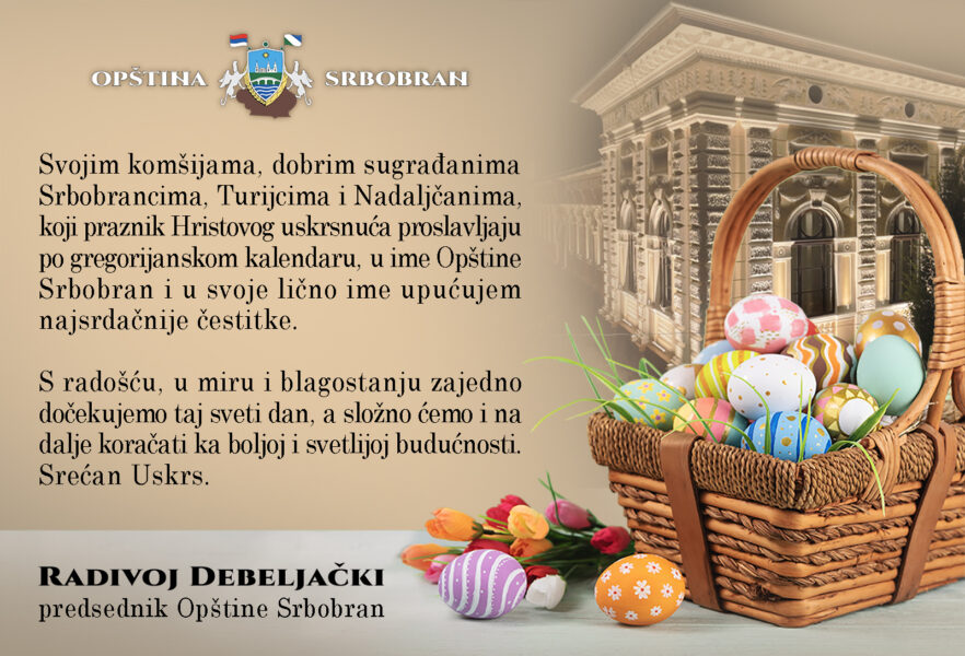 “Svojim komšijama, dobrim sugrađanima Srbobrancima, Turijcima i Nadaljčanima, koji praznik Hristovog uskrsnuća proslavljaju po gregorijanskom kalendaru, u ime Opštine Srbobran i u svoje lično ime upućujem najsrdačnije čestitke. S radošću, u miru i blagostanju zajedno dočekujemo taj sveti dan, a složno ćemo i na dalje koračati ka boljoj i svetlijoj budućnosti. Srećan Uskrs.”, stoji u čestitci koju potpisuje Radivoj Debeljački.