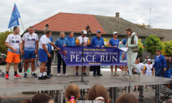 Prisutnima su se obratili i učesnici Trke mira, Predrag Knežević – predsednik Trke mira za Srbiju, i Devašišu Torti iz Engleske – predsednik Trke mira za Evropu. Prvi je govorio gospodin Torti, zahvalio se svima na dobrodošlici i što su svojim dočekom maratoncima ulepšali ovaj dan. “Baklja koju držim u ruci je simbol mira, prošla je ceo svet, iz ruke u ruku mnogih sportista, ali i običnih ljudi, držali su je Muhamed Ali i Novak Đoković, i brojni drugi ljudi koji samo žele da se svetom šire mir u zajedništvo. Trka postoji već 37 godina, baklju je te davne 1987. godine prvi podigao osnivač Šri Činmoj, i poslao je u svet sa porukom mira, da je dobri ljude prenose gde god budu trčali”, rekao je predsednik Trke mira za Evropu, čestitajući Srbobrancima opštinski praznik, poželevši deci da se što više bave sportom i da danas trče najbrže što mogu.