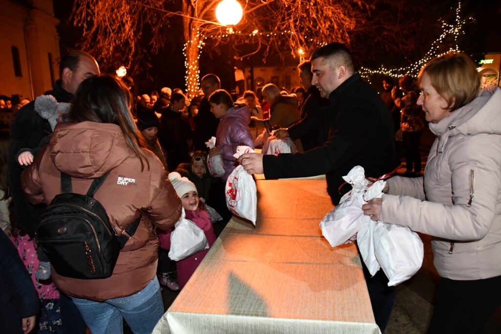 Nakon zajedničkog paljenja sveće, predstavnici lokalne vlasti, Opštine Srbobran i Mesne zajednice Srbobran, podelili su 300 božićnih paketića deci koja su prisustvovala svečanosti.