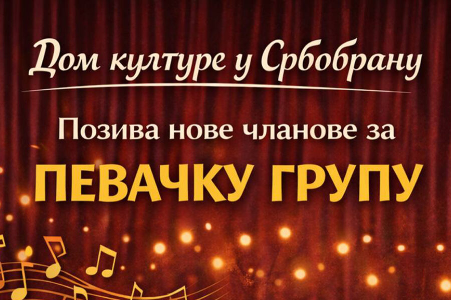 “Postanite deo pevačke grupe u kojoj ćete steći osnove pevanja, razviti glas i sluh, upoznati se sa pesmama različitih muzičkih pravaca, kao i dobiti slobodu i sigurnost u scenskom nastupu. Časovi su namenjeni svima i početnicima i onima sa iskustvom. Pored pevanja, polaznike očekuje i rad na scenskom izrazu, kao i mogućnost nastupa na koncertima, festivalima i manifestacijama. Dobro došli su svi koji vole pesmu i žele da budu deo ove priče. Prijavite se na broj 062 935 4043”, kaže se u pozivu koji stiže iz Doma kulture Srbobran.
