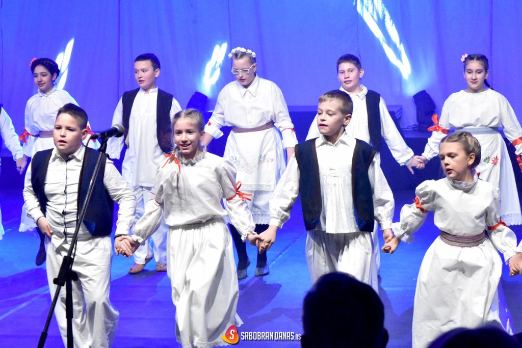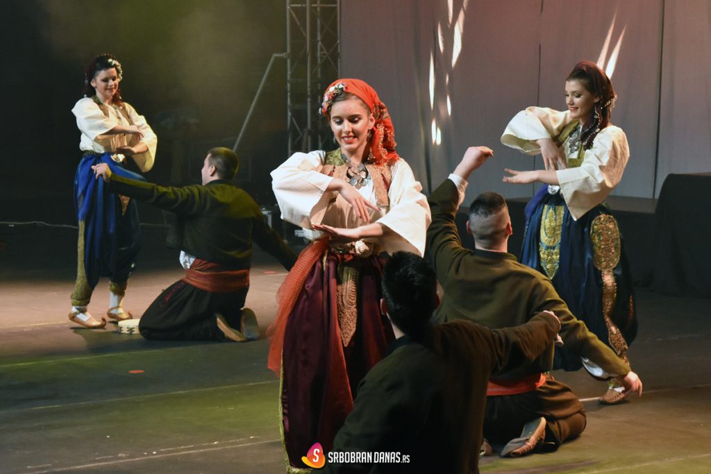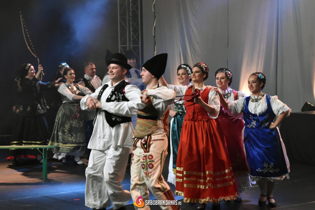 Na veliom podijumu sportske hale smenjivali su se ansambli različitih uzrasta, u raznolikim nošnjama i zanimljivim igrama, koje su praćene živim orkestarskim izvođenjem muzike. Prvi su nastupili klinci iz Srbobrana, a za njima i mali Turijci, kako bi probili led za one malo starije, a na posletku i za najstariju grupu izvođača. Predstavljene su igre sa: Banije, Kobišnice, Kosova, Gruže i Nišave, iz Banata, Knjaževca, Krajišta,Vranja i Bača, a pesme “Pošla Trojanka na Vodu” i “Trgne moma za voda” posebno su bile nagrađene aplauzima. Izvedene su i Ciganske igre iz Vojvodine, a na kraju, kao pozdrav, ansambl je zajednički otpevao “Alaj alaj pjevam”.