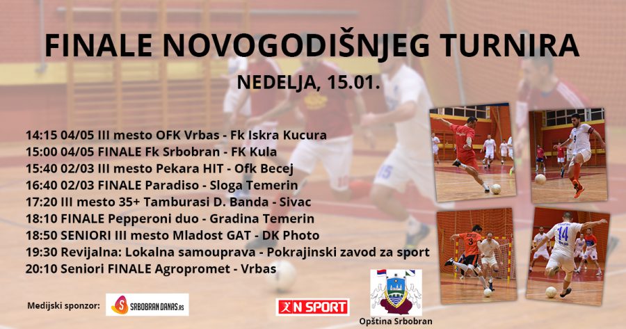 U nedelju, 15.01. sa početkom u 14:15h, počinju finalne utakmice novogodišnjeg turnira u malom fudbalu.