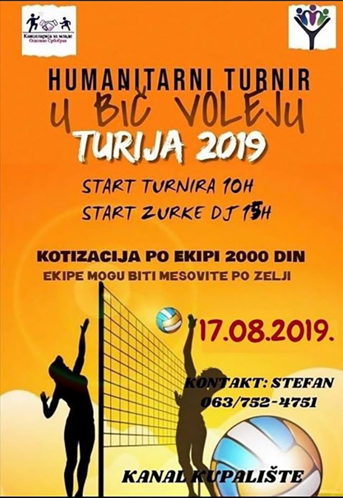 Kancelarija za mlade opštine Srbobran organizuje u subotu, 17. avgusta, na kupalištu kod mosta u Turiji, humanitarni turnir u odbojci na pesku. Sav prihod od kotizacije za “Bič volej” biće doniran udruženju ,,Biser“ iz Srbobrana.