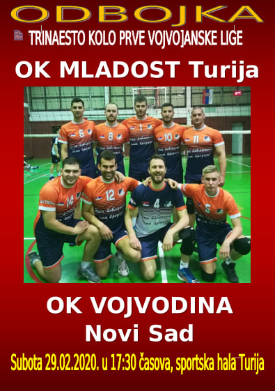 Turijska “Mladost” trenutno je 4. plasirana ekipa u Prvoj Vojvođanskoj ligi “Zapad”, dok je “Vojvodina” 2. i ima značajnu bodovnu prednost. Utakmica koja je planirana za 29. februar derbi je kola i garantuje odličnu odbojku, pogotovo zato što je domaći klub u poslednja dva meča odigrao savršeno. U 12. kolu porazili su na svom terenu “Hajduk” sa 3:0 (25:15, 25:15, 25:14,), a zatim i “Vrbas” u gostima 0:3 (12:25, 19:25, 13:25).
