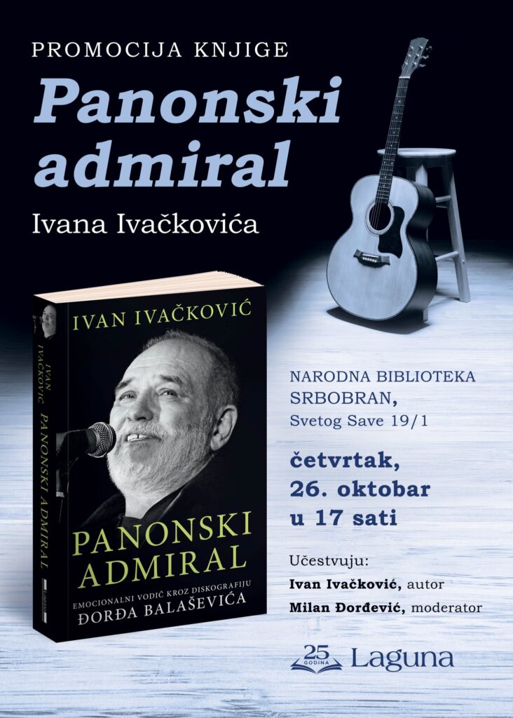 “Panonski admiral – Emocionalni vodič kroz diskografiju Đorđa Balaševića” je knjiga koja će biti predstavljena u Narodnoj biblioteci Srbobran 26. oktobra 2023. (četvrtak), sa početkom u 17.00 časova.