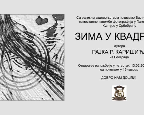 Dom kulture Srbobran priređuje izložbu fotografija autora Branimira Karanovića, čije će se otvaranje održati u Galeriji ove ustanove u utorak, 18. marta 2025. godine, sa početkom u 19:00 časova. Ulaz…
